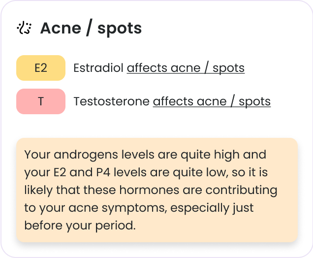 Get a comprehensive report on what your hormone levels mean for the symptoms you’re experiencing, in the context of your cycle.